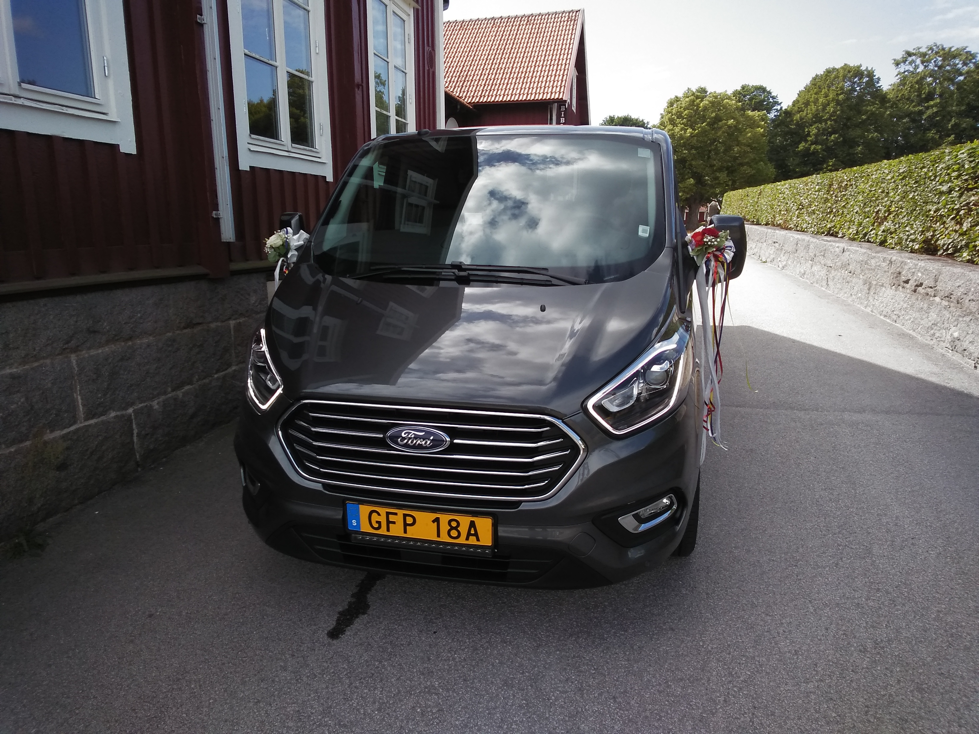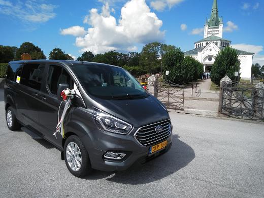Specialbeställning, bil utan taxiskyltning med blomsterarrangemang i backspeglarna, stolarna vända mot varandra med textilmattor på golven. I bagageluckan fanns stor eldriven kylbox med kylda drycker som bröllopsgästerna tog del av med glädje efter vigseln i kyrkan.